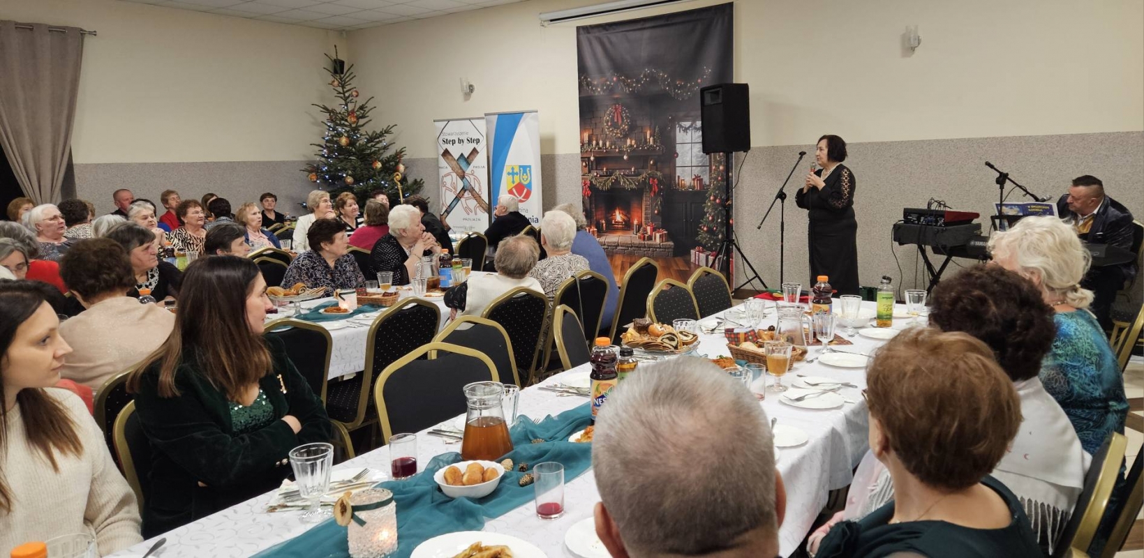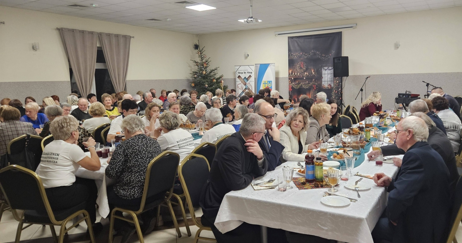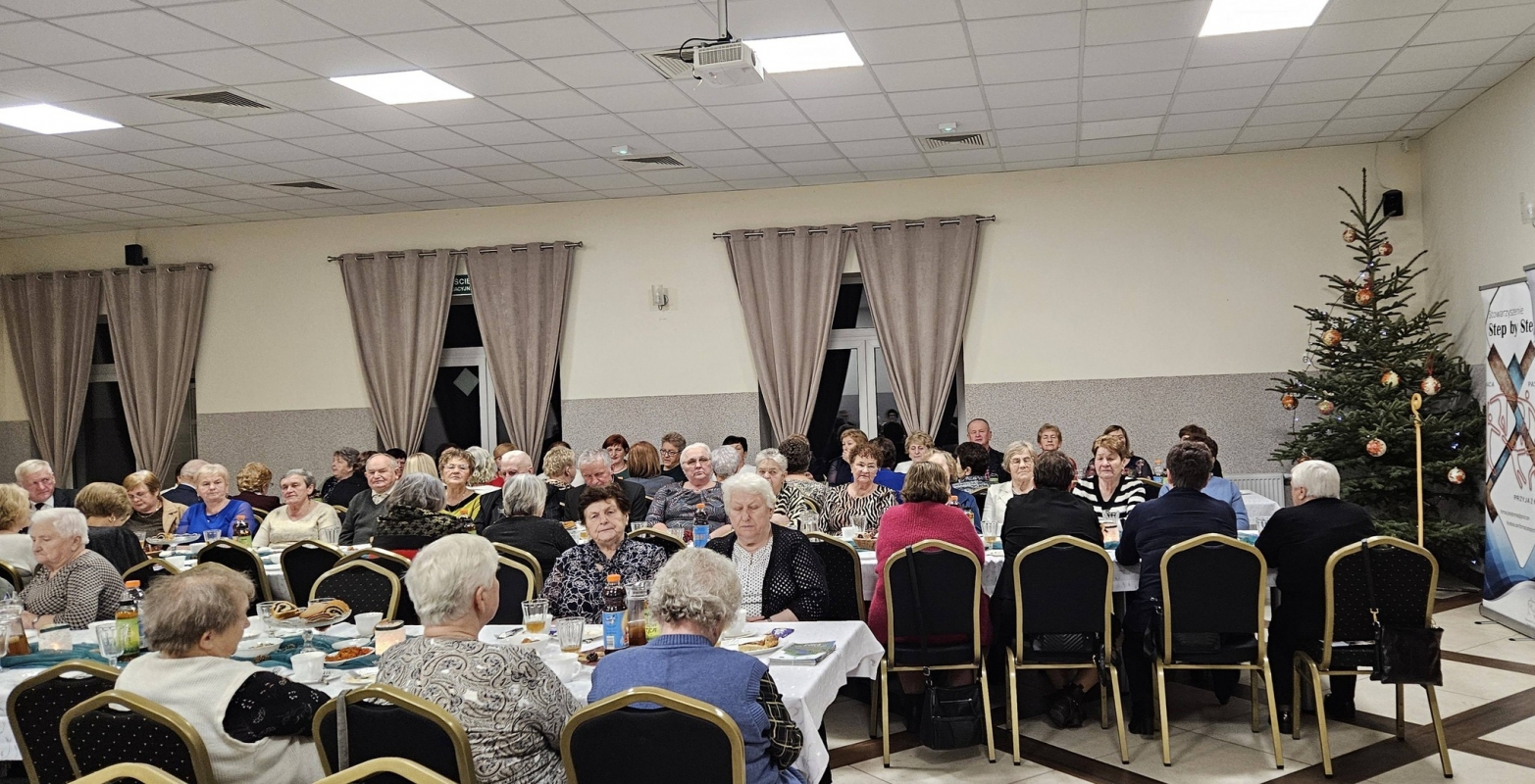 Serdeczne życzenia świąteczne i noworoczne przekazał Wójt Piotr Majchrowski, dziękując seniorom za ich obecność, mądrość i ogromne serce. Wspólną modlitwę poprowadził oraz duchowe słowo, niosące nadzieję i spokój wygłosił ksiądz Marian Marszalik. Następnie wszyscy przełamali się opłatkiem i zasiedli do wspólnej kolacji. Na zakończenie uczestnicy otrzymali od stowarzyszenia słodkie upominki –drobny, ale pełen serca gest, który dopełnił uroczysty i rodzinny charakter spotkania.