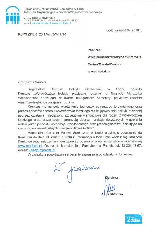 Z przyjemnością informujemy, iż Regionalne Centrum Polityki Społecznej z siedzibą w Łodzi ul. Snycerska 8, 91-302 zgłoszenia do Konkursu Województwo Łódzkie Przyjazne Rodzinie w kategoriach: