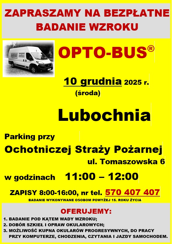 OPTO-BUS Bezpłatne badanie wzroku- 10 grudnia 2025 r.